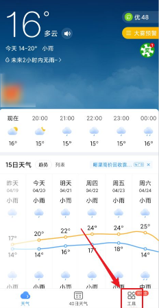 1、打开2345天气王后,点击界面右下角“工具”按钮。见下图