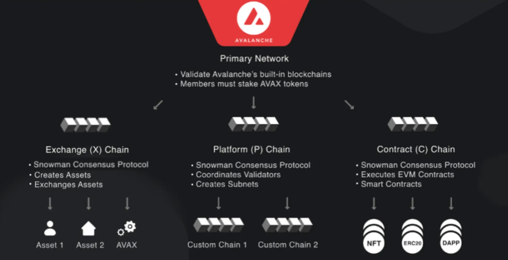 X-Chain 与 P-Chain 多半是验证者、资产发行等底层用途。
