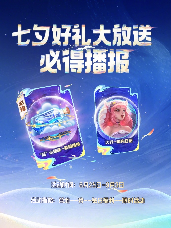 乞巧糕、攒乞巧币,更多精美周边、皮肤好礼刷不停!