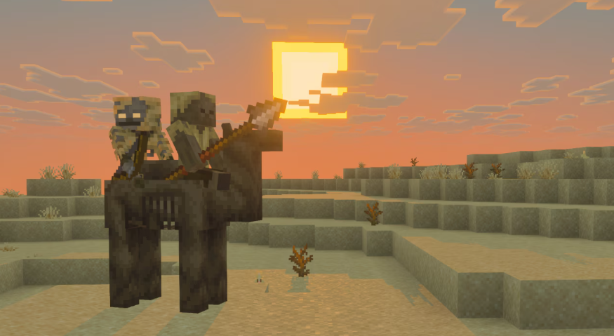 ·“Mounts of Mayhem”更新包含之前在Java版上先行实装的内容,包括·新物种Parched,属于骸骨战士的亚种,徘徊在沙漠地区,·新物种Camel Husk,属于骆驼的亚种,可以被Parched骑乘,新的武器枪,分为木、铜、铁、金、钻石等多种材质,主打蓄力攻击以及突刺攻击,另有其他调整。