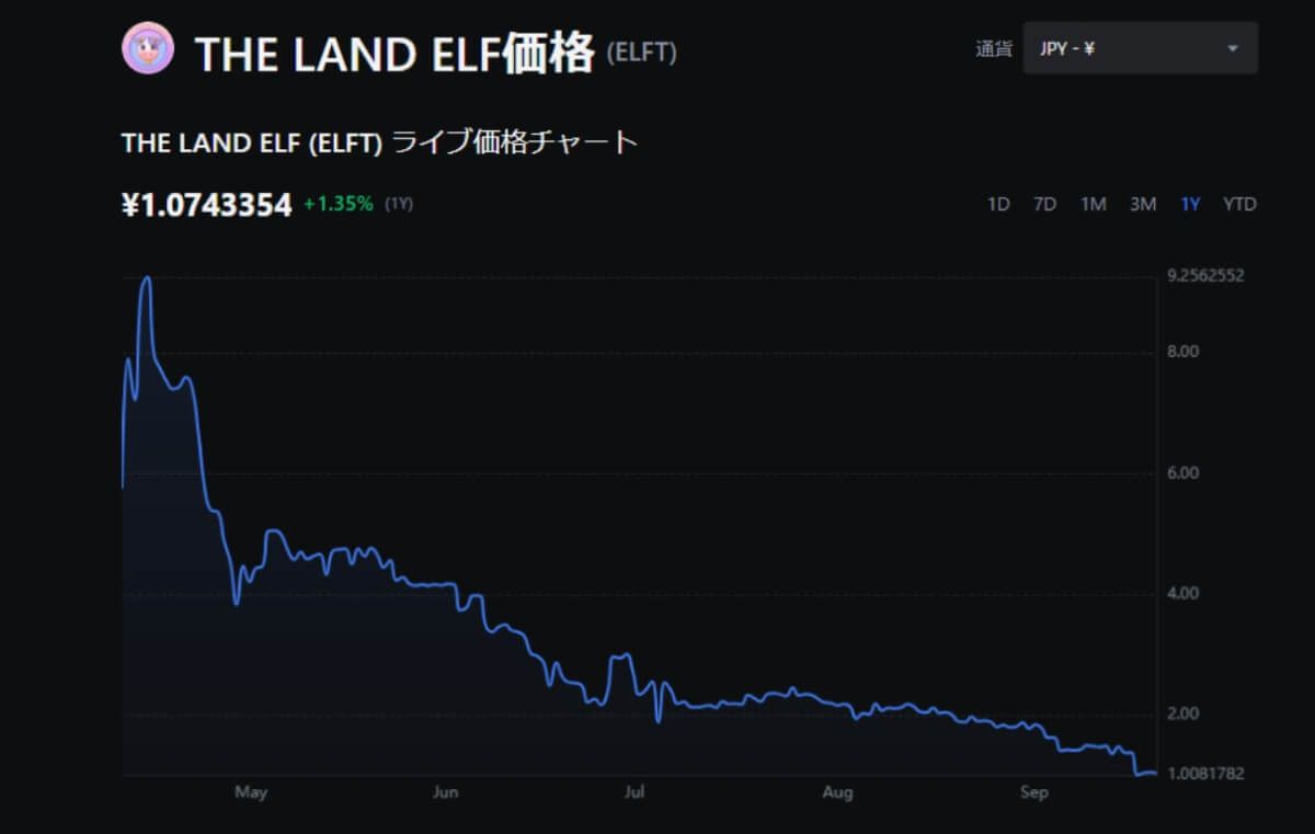 2024年2月在bitFlyer上进行的Elf Token IEO,交易价格以每枚代币12.50日元开始,但自上市以来,代币价格持续大幅下跌。