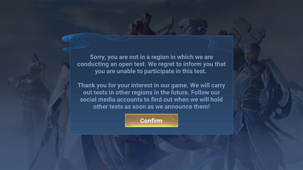 遇到下图这些提示,是因为本作是 国际服游戏 ,是锁区的。而你第一次进入游戏没有挂加速器,被系统检测到不在测试地区,即使你后面挂了加速器也会提示这个。