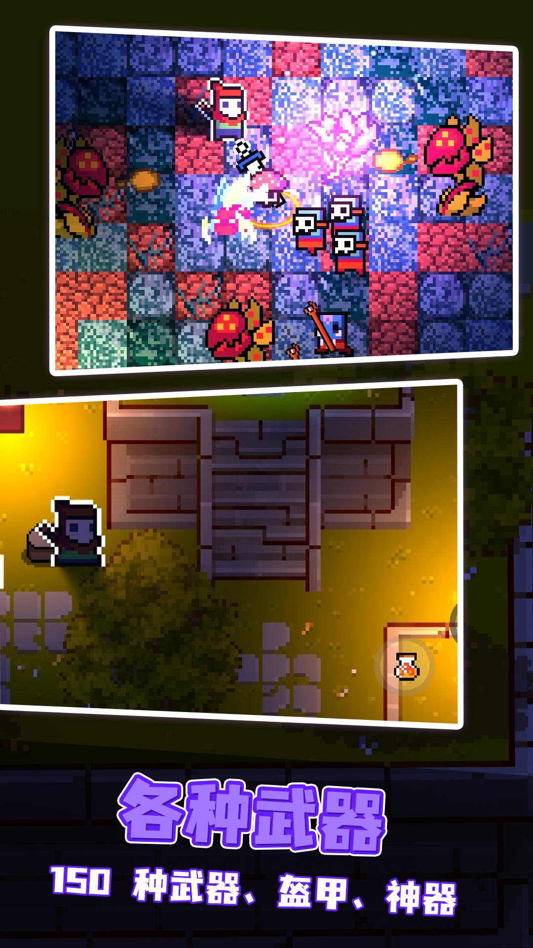 游戏中有各种奇特的枪支,如变蛇激光、豌豆射手等,每把枪都有独特效果。玩家可以收集无限量的道具和彩蛋,探索地牢深处的秘密。