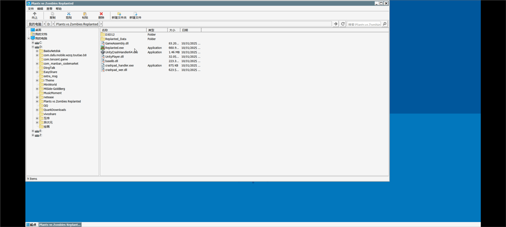 4、进入模拟器系统后,依次打开D盘→Plants vs Zombies Replanted文件夹,找到游戏的exe启动文件,用屏幕模拟鼠标双击即可运行游戏;