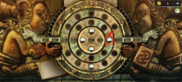 2、点击后,将圆盘和图纸放进去。放完后就要开始过排列圆球的小游戏了,可以先转动中间的圆盘。