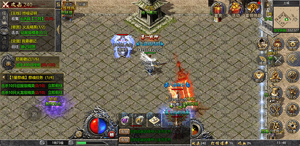 3. 万人同屏攻城,让血浸透沙城。沙巴克城,是热血与青春汇聚的圣地。参加万人同屏攻沙,再现当年沙城血战的宏大场面,带你体验传奇的真谛!