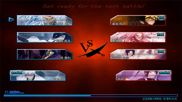 对战电脑:玩家自选三名角色,并同时为电脑方选择三名角色,由电脑操控与玩家对战,直至一方全部角色落败。胜利后返回角色选择界面,可继续下一轮游戏。
