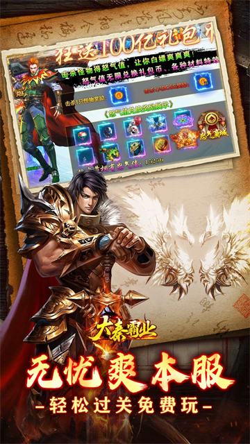 大秦霸业公益服是一款十分有趣好玩的且经典复古的传奇手游,是目前很多玩家们欢迎的角色扮演游戏,具有的游戏玩法与内容是备受玩家们喜爱的,在这里玩家不仅可以选择自己喜欢的角色,还可以通过打怪高爆出顶级神器,快速提升实力,挑战多样刺激的对决,而且不论是PVP对战还是PVE战斗,都是刺激无比的,总能让你沉浸其中,此外,每日登陆游戏还有超级豪礼免费送,感兴趣的话,就来下载大秦霸业公益服试试吧。