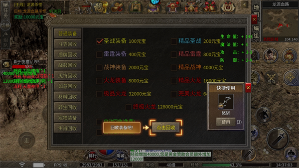 3、打野怪可以获得装备,多余不要的可以点击回收。