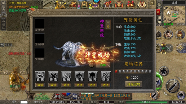 4、游戏内设有宠物,提升宠物等级也是提升战力的一大属性。