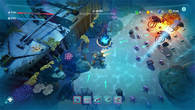 3. 机甲个性化:玩家可升级并定制自己的潜艇机甲,打造专属装备。