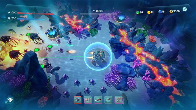 海洋守护者穹顶生存下载最新版是一款十分有趣好玩的塔防采矿手游,游戏里玩家需要驾驶不同的机甲在水下寻找神器与资源,然而在这个收集的过程中,将会遇到各类强大的怪物对你展开攻击,你需要运用所收集的武器装备,机甲、炮台等对战各种强劲的海盗怪物,不断的提升自己的生存实力,更好的探索收集资源,解锁新的玩法与内容,感兴趣的话,就来下载海洋守护者穹顶生存下载最新版试试吧。