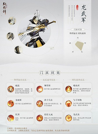 龙武军保家卫国的赤胆忠心令人叹服,门派弟子更是个个英勇正义、身手不凡。进能奋勇杀敌,退可辅助团队。门派的技能主要分为物理输出与团队辅助两种流派,可在战斗中发挥不同的威力。