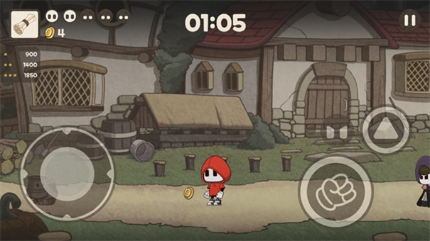 3、正式开始后左边控制角色的移动,右边是跳跃,攻击和技能按键。
