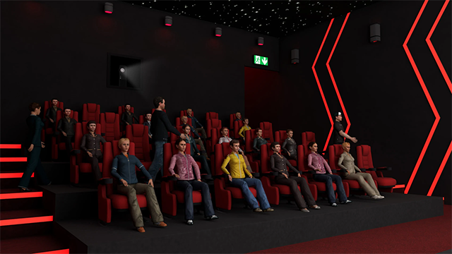 3、空间布局:自主设计影院内部环境,包括放映厅座位分布、灯光氛围及音响设备的位置规划。
