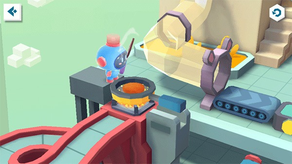 5、用矿车接住玉米粒,通过热气球运送至爆米花机。