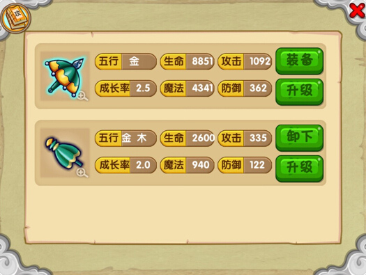 造梦西游ol 中法宝都有其各自的属性,不同的属性在加成方面不同。