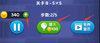 此外游戏还有花金币提示,还有看视频提示,左上角的话是你的金币,你可以通关或者捡取地图金币可获得