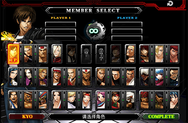 4、参战角色阵容扩充,除前作人物外,新增“龙虎之拳队”、“超能战士队”、“怒队”、“金队”四支队伍,以及“音巢篇真终章的京”和“取回炎之力量的庵”共14名角色,全体可选角色达34名,玩家可自由组合心仪队伍。