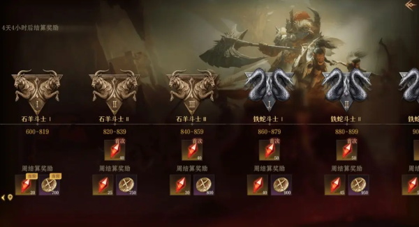 每周结算时还将根据段位额外获得龙髓石和全域竞技场印章奖励
