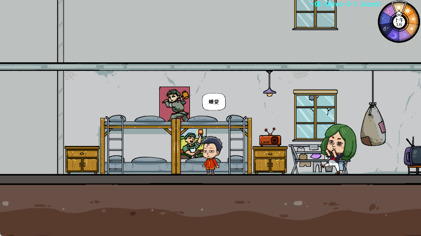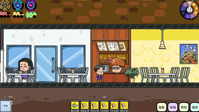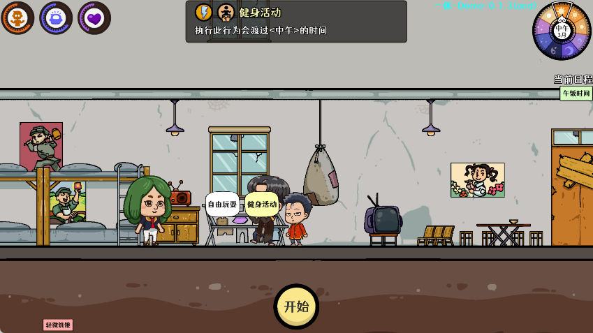 场景中与物品交互、提升属性都会消耗相应的体力/脑力/心力,并使右上角的时间推进一小格。
