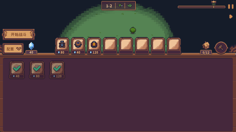 3、进入对局后,点击下方的配置选项,系统会让你挑选装备与防御装置。