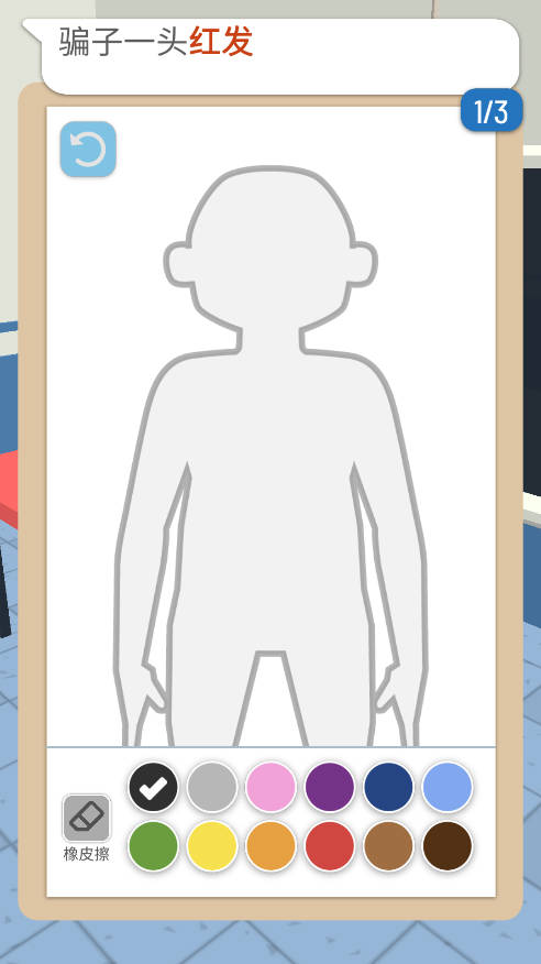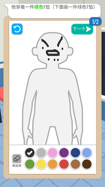 3、根据受害者提供的信息,用画笔在游戏界面绘制嫌疑人的相貌特征。