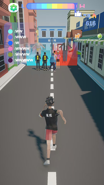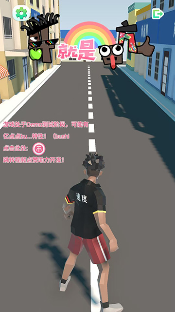 2. 赛道操控系统:操作简单易上手,玩家只需在屏幕上左右滑动,就能精准控制“甲亢哥”的移动方向。不过,赛道中需要时刻保持警惕,灵活躲避往来路人与各种障碍物,否则将阻挡前进的步伐。
