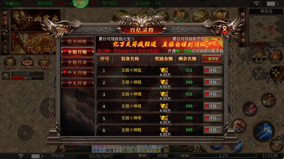 5、通过高爆率地图刷怪、参与打怪抽奖和官方装备回收,可轻松获取灵符、元宝及稀有装备,零氪玩家也能快速积累资源,为强化角色和宠物提供保障。