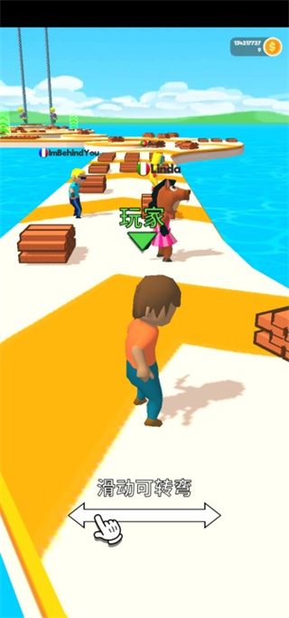 1、首先我们进入搭个桥快跑游戏中,操作是比较简单的左右滑动来进行人物的控制。