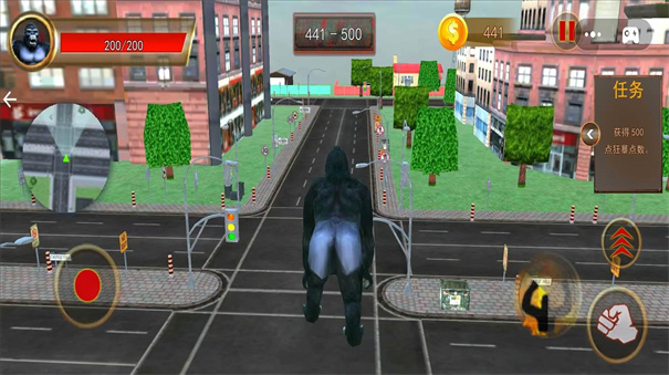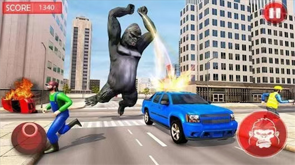 玩家需要操控猩猩在城市中与敌人战斗,通过击败敌人获取经验。积累足够的经验后,猩猩将获得升级,提升各项能力。