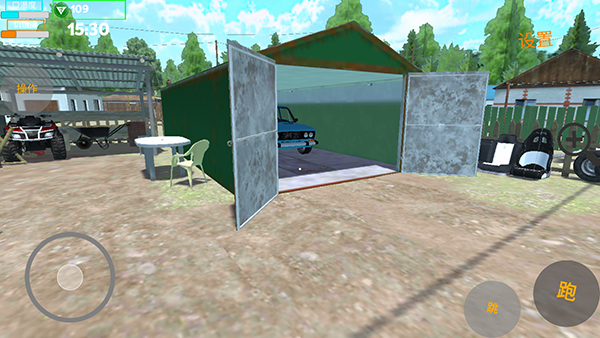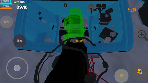 3、找到车库后,车辆是没有组装的状态,此时我们将零件一个个的安装进汽车里(对准物品点击左上角操作,将物品放置到汽车指定位置,点击操作安装),将所有物品安装好之后进入汽车。