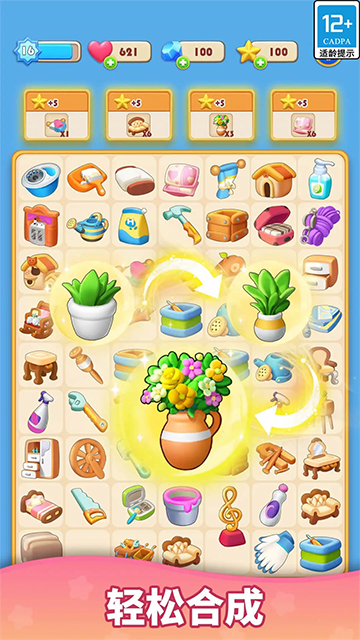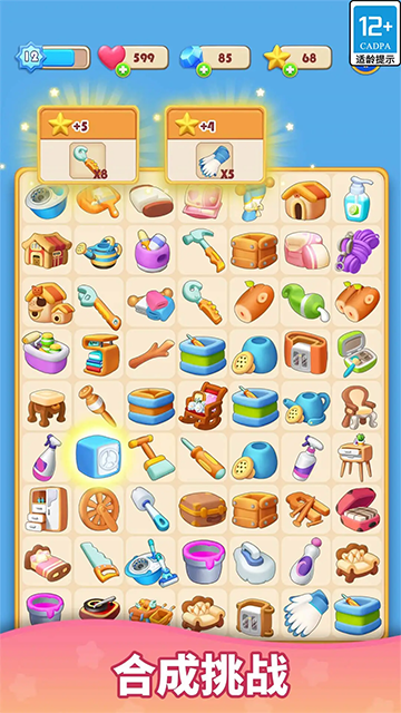 3、灰色区域内的物品暂时无法移动,但可以通过与彩色物品合成来逐步解锁这些区域。