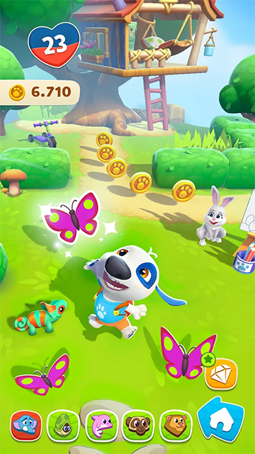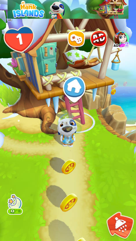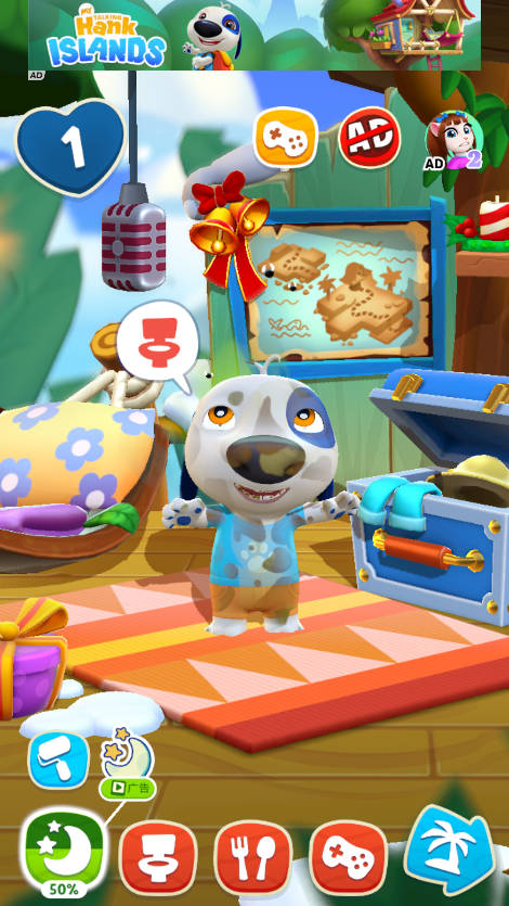 5. 与汉克一起关心和玩耍:给汉克穿上他最喜欢的衣服,设计树屋,展示你的独特风格。用有趣的食物喂你的小狗,清洁它的牙齿,让它睡觉。或者,你也可以去探索岛上的夜生活。