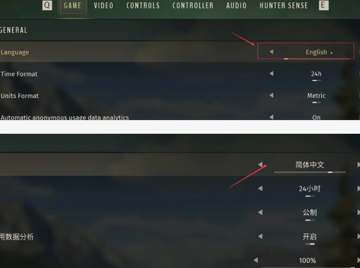 2、再进入“Game”选项里,把语言改成中文就行了。
