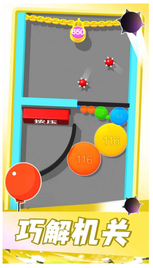 3、随着关卡推进障碍数量增多且移动轨迹更复杂,此时需规划气球充气节奏与释放时机,利用气球不同体积挤开部分障碍或卡住机关。