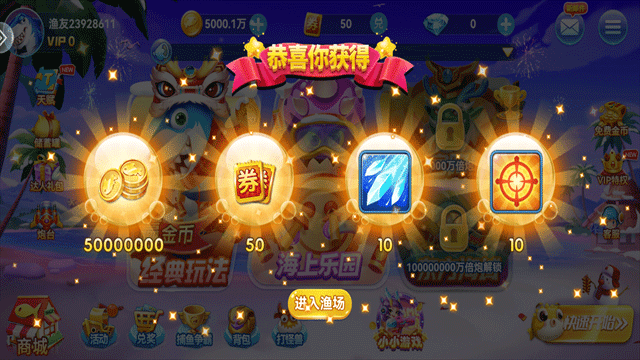 6、捕获鱼类之后会获得金币和钻石,钻石用来升级炮台。