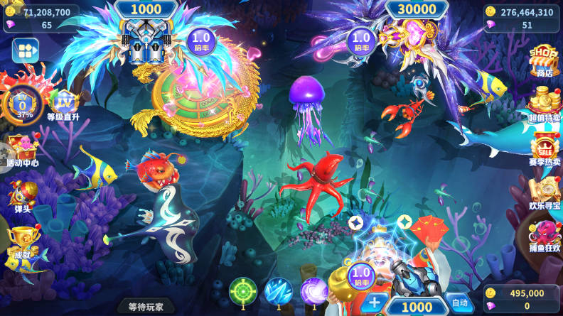 4. 经典实时联网玩法:保留传统刺激的捕鱼玩法,实时联网让多名玩家同场竞技,共同争夺鱼群,体验紧张刺激的争食乐趣。