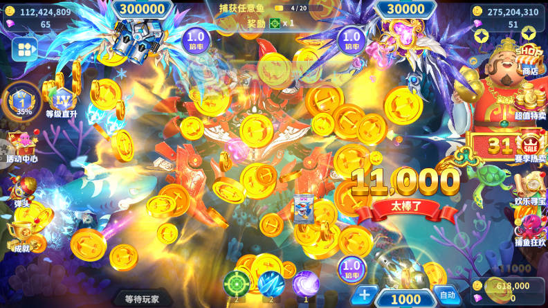 5. 超多福利放送:登录即送海量金币,每日任务和节日玩法福利多多。定制炮台皮肤和翅膀系统,让你在捕鱼世界中脱颖而出。