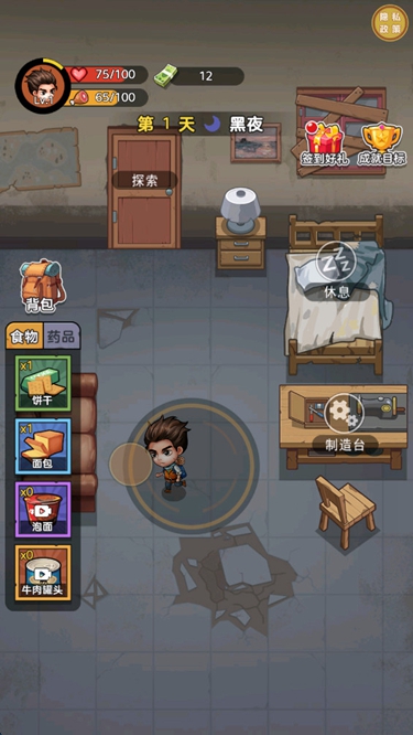 2.仅靠等待救援难以存活,必须主动出击,外出搜寻食物、药品等生存物资,才能维持生命值,延长存活时间。