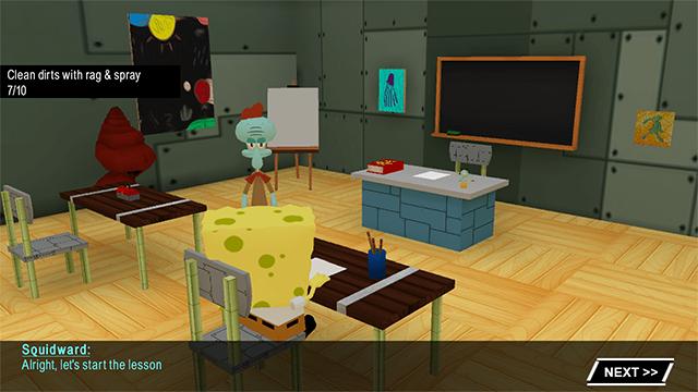 游戏以《海绵宝宝》中的比奇堡为舞台,核心场景为章鱼哥的“触手画廊”。章鱼哥自称为“艺术教授”,玩家将在他首次对外开放的画廊中展开探索,通过融合经典动画场景与恐怖氛围,创造出既熟悉又充满新意的体验。