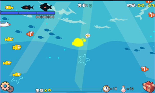 2、在游戏初期,要优先吞噬比自己小的鱼类来快速成长,避免被大鱼捕食。