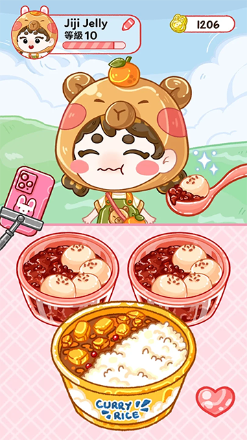 5、果冻制作完成后,就能开启“吃播”环节,欣赏角色品尝果冻的反应,体验轻松治愈的休闲乐趣。