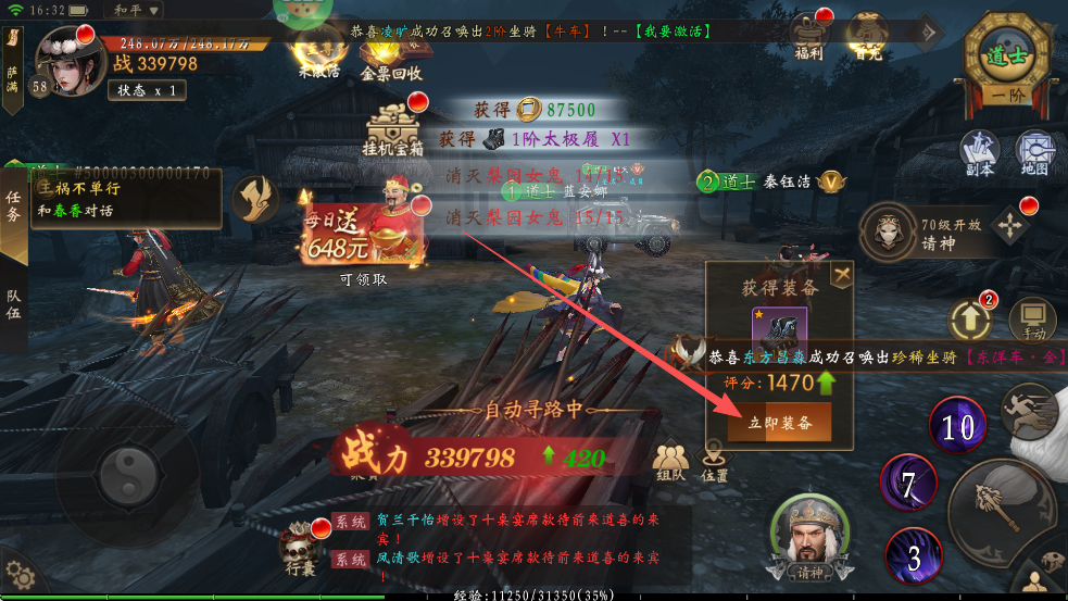 完成主线任务即可轻松提升等级和战力