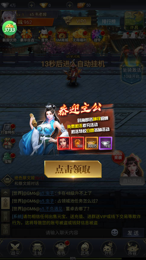 1、新玩家一上线就可以领取丰厚的游戏福利