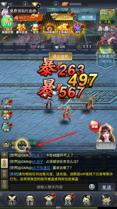 2、点击左下角的任务会自动执行,完成后可以获得升级经验以及装备