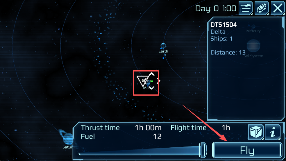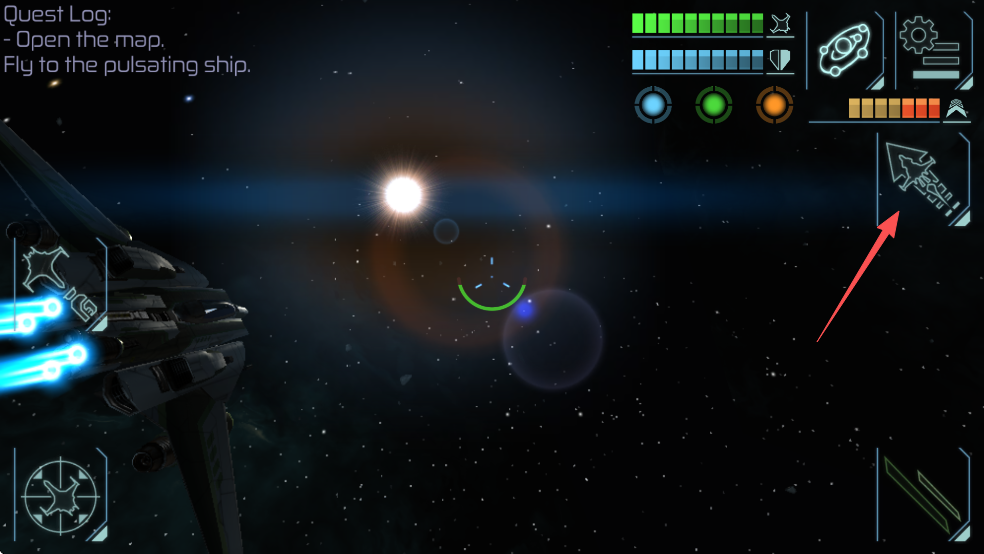 敌舰以红色标记标注,寻找它们并靠近可使用加速按钮提升速度