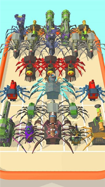 将蜘蛛节段首尾相连,即可合出可成长的小火车;每次进阶都会解锁全新怪物形态与专属技能,外观与战力同步升级。