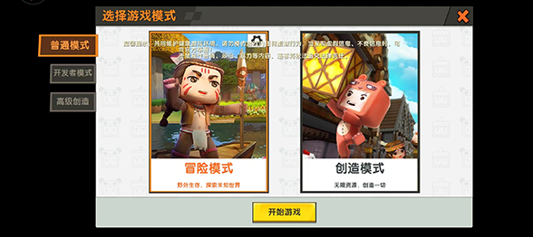 2、在首页点击开始游戏,创建一个新的世界选择冒险模式进入到游戏之中;