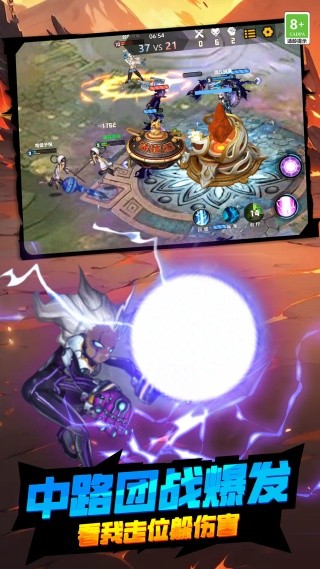 3. 玩家可以与队友通过实时语音沟通战术,在中路、边路或野区发起团战,协同作战。
